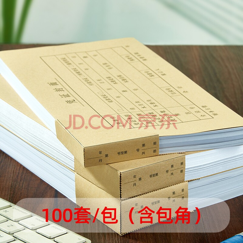 商品相册:金蝶(kingdee)发票版凭证封面 会计凭证装订封皮 120g牛皮纸 封面+封底+包角100套 243*142mm第