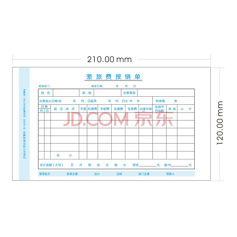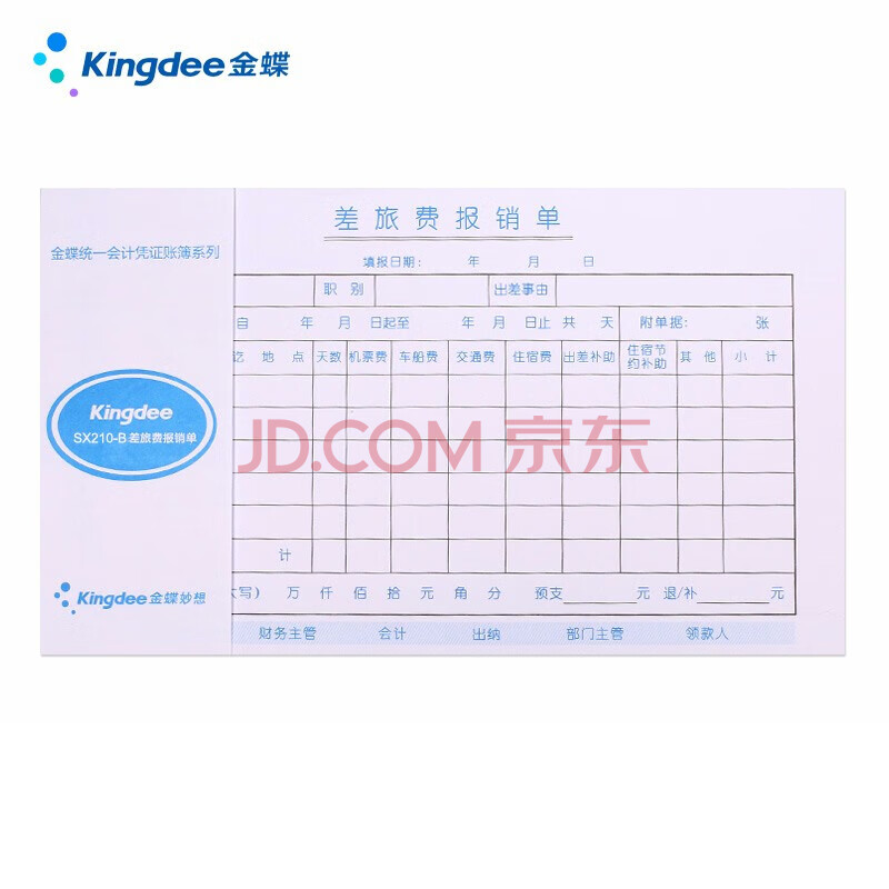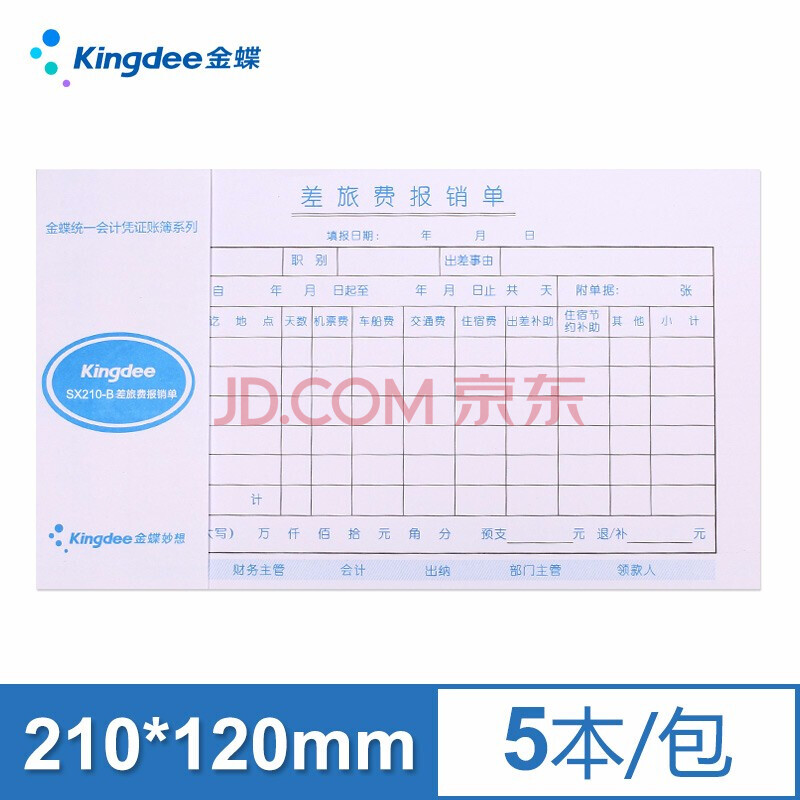 商品相册:金蝶(kingdee)差旅费报销单SX210-B通用财务手写单据210*120mm 5本/包第