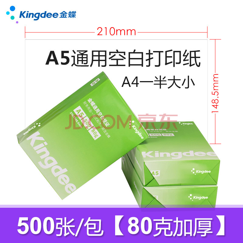 商品相册:金蝶(kingdee)A5打印纸白纸80克通用空白凭证复印纸电子发票打印纸 500张/包热门商品办公用品打印纸第