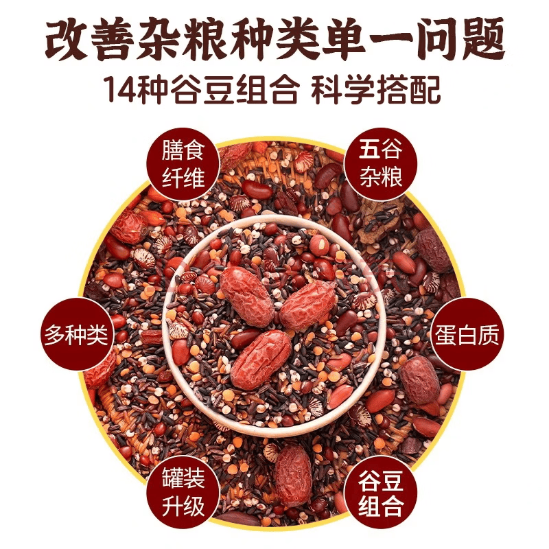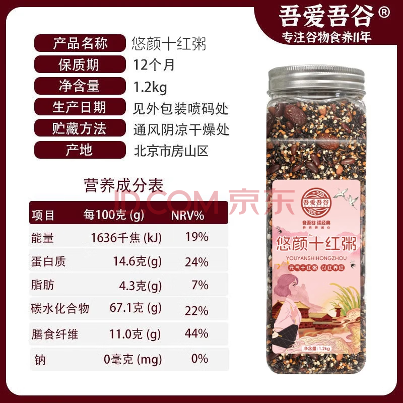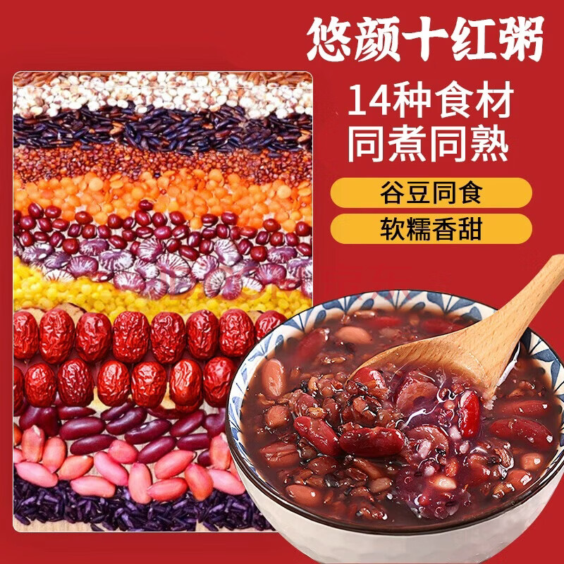 商品相册:吾爱吾谷悠颜十红粥2.4斤八宝腊八粥14种五红粥五谷杂粮粥血糯米粗粮粥第
