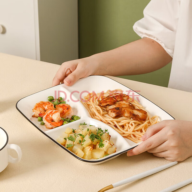 商品相册:传旗陶瓷减脂定量餐盘211分格餐盘子早餐盘饺子盘果盘圆盘三格第