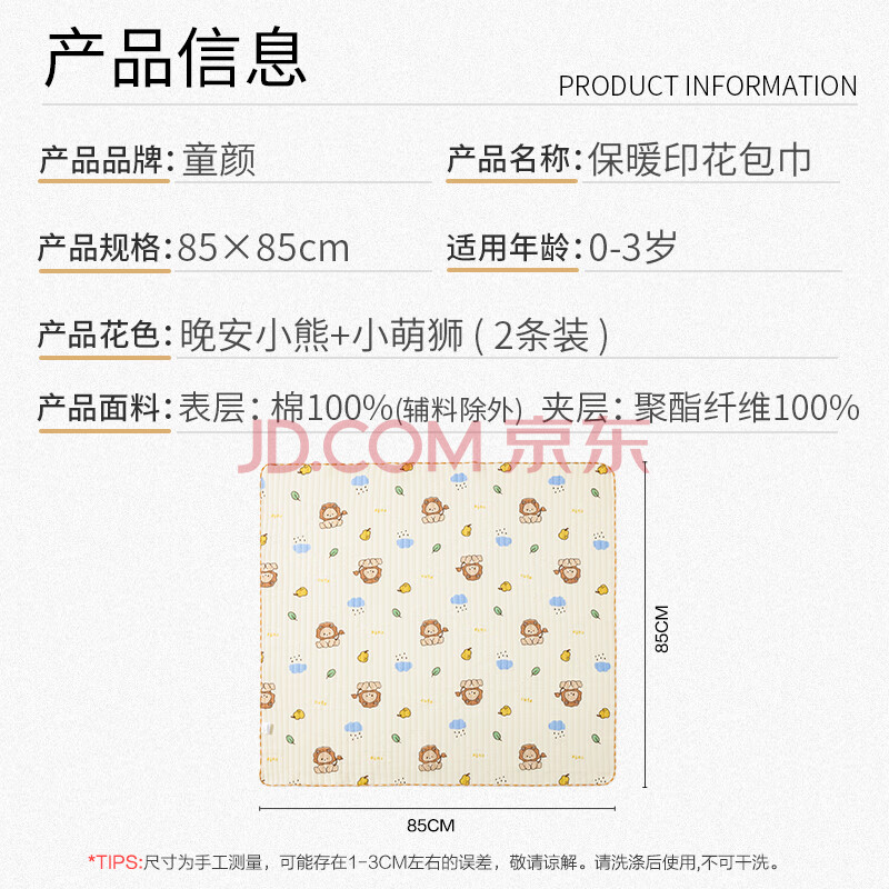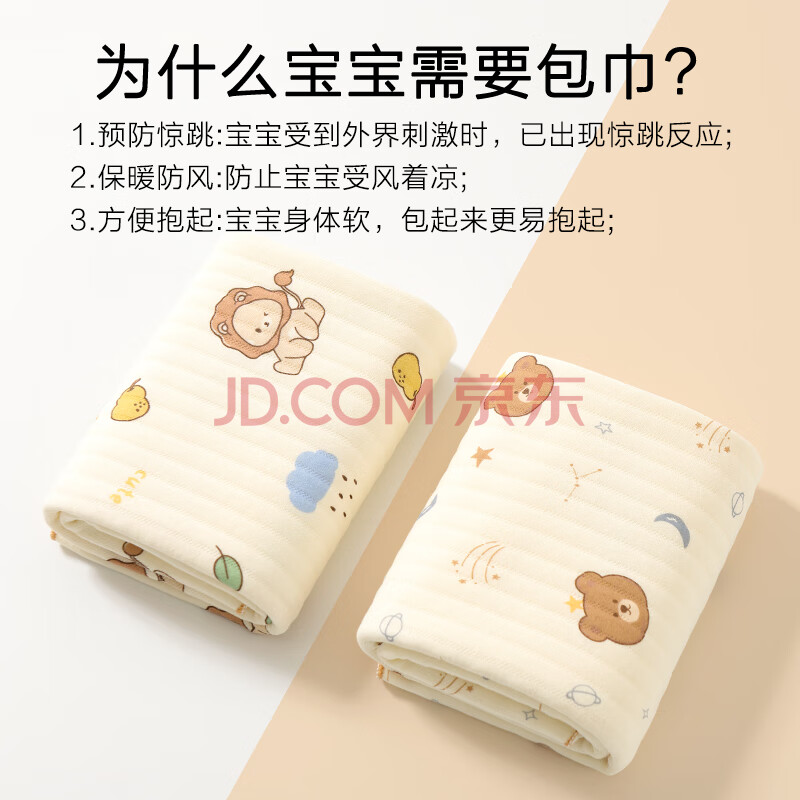 商品相册:童颜新生婴儿包单产房夹棉襁褓裹布包巾包被宝宝睡袋抱被 2条装第