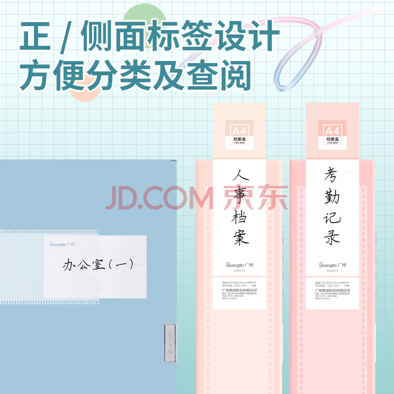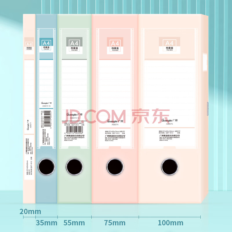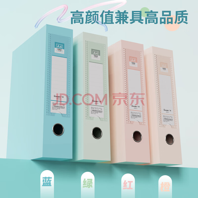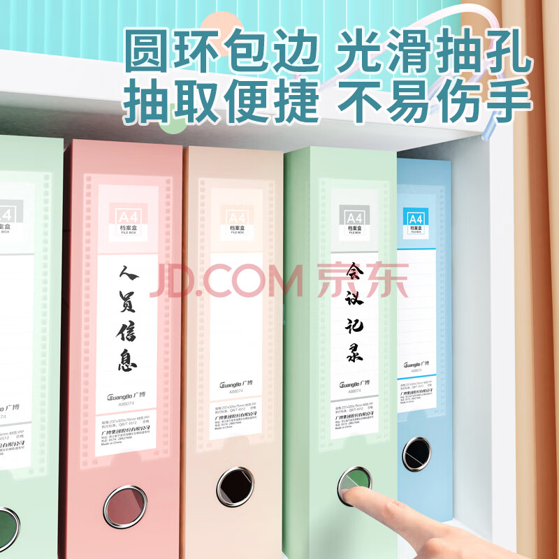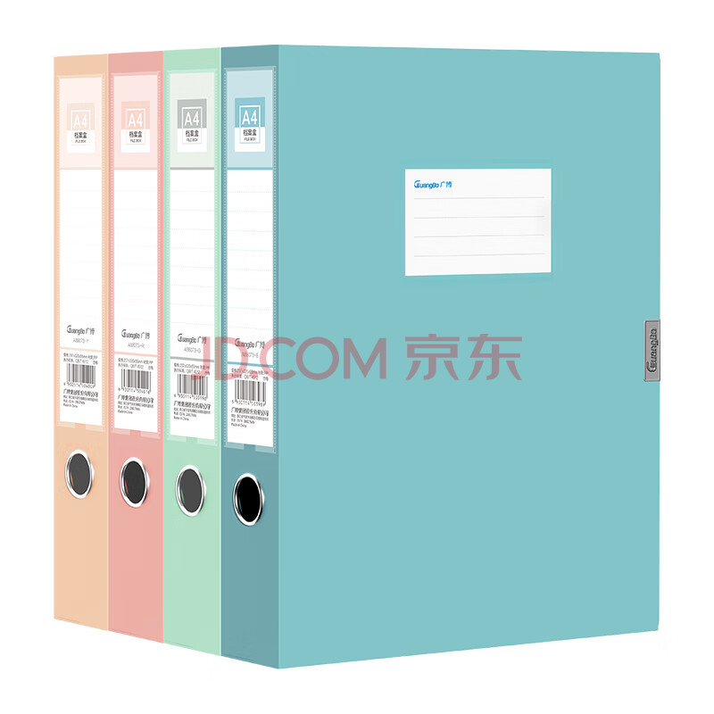 商品相册:广博(GuangBo)4色4只装55mm彩色马卡龙A4文件盒/档案盒/资料盒人事财务凭证收纳盒办公用品A88073第