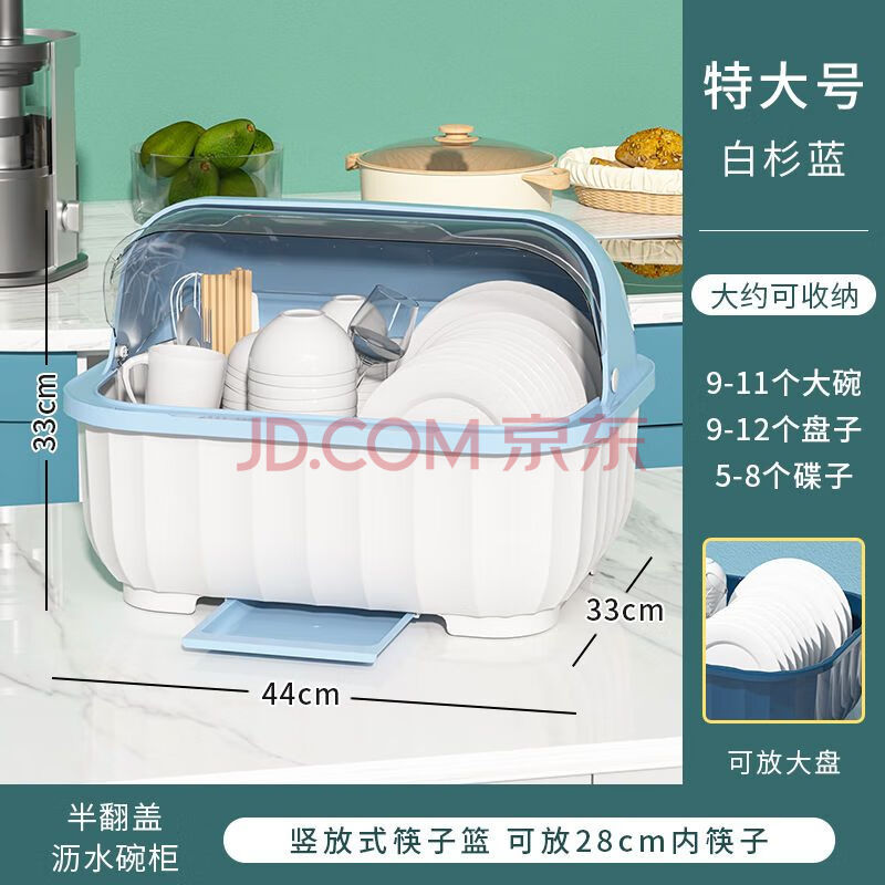 商品相册:品喻(PINYU)【特大号】碗筷收纳盒 碗柜沥水碗架带盖碗筷餐具收纳盒碗碟架 蓝第