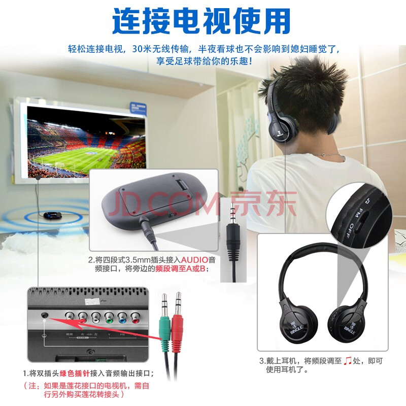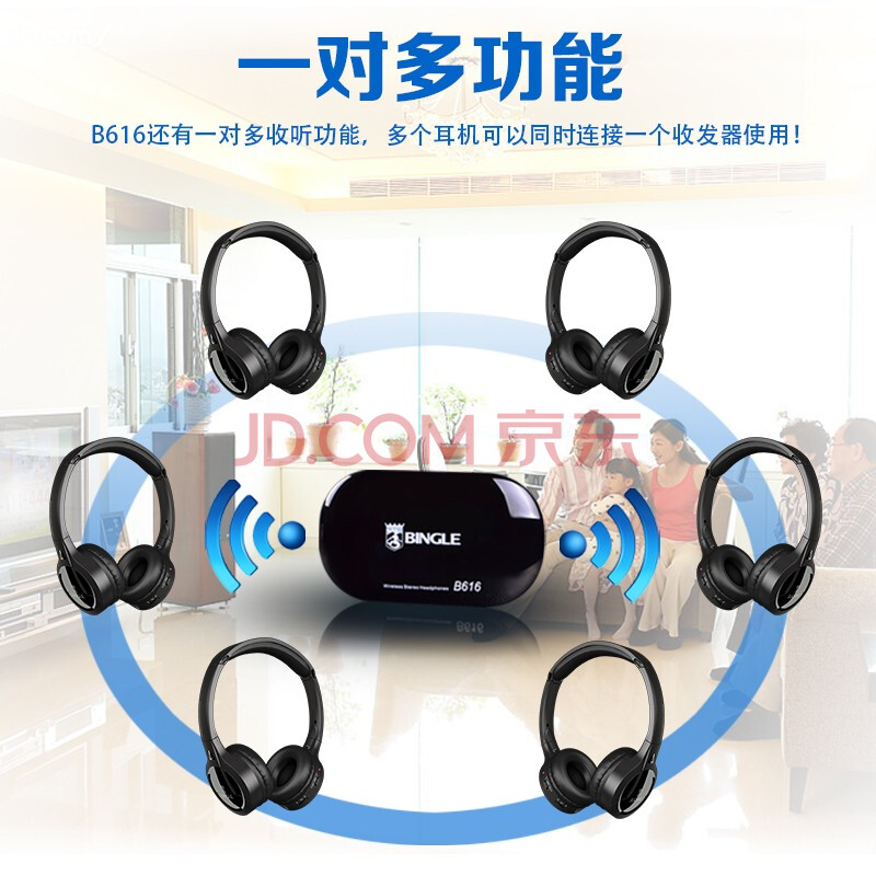 商品相册:宾果 B616 电视无线耳机 头戴式电视电脑手机通用多人连接立体声FM调频(黑色)第