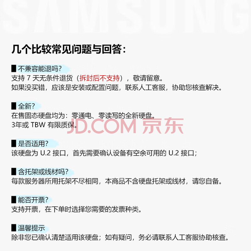 商品相册:三星 SAMSUNG 企业级SSD PM9A3 U.2 NVMe 1.92TB 存储服务器固态硬盘 MZQL21T9HCJR-00B7C第