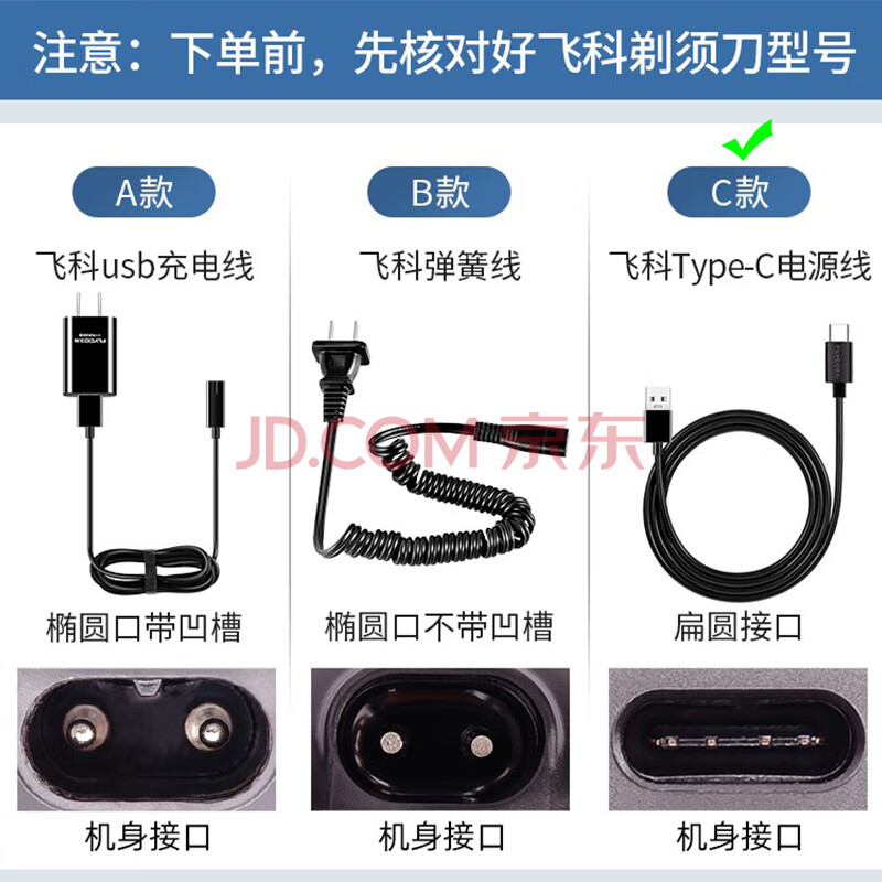 商品相册:轩邑 适用飞科剃须刀充电器电源线博锐刮胡刀Type-C充电线FS888/889/891/901/903/925/926/927/968/988第