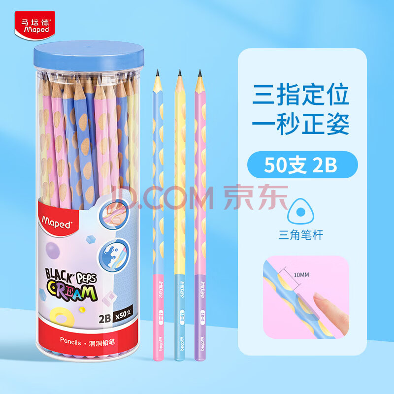 商品相册:马培德Maped 奶油色洞洞铅笔50支2B 铅笔小学生2b书法练字考试笔 儿童三角正姿铅笔高颜值文具853105CH第