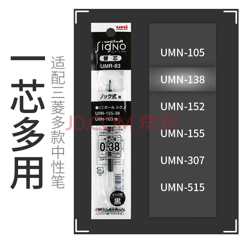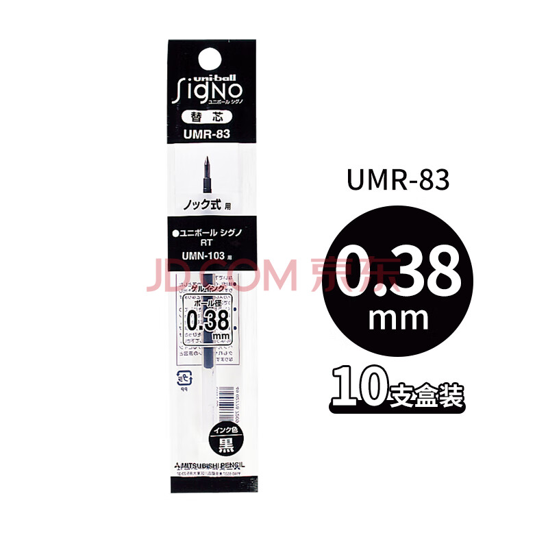 商品相册:uni三菱 uni-ball UMR-83按动笔芯0.38mm中性笔黑色替芯 适用签字笔UMN-138系列 10支第