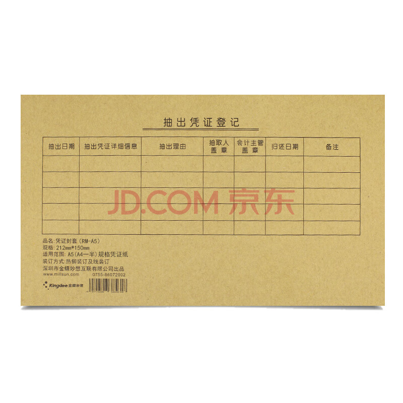 商品相册:金蝶(kingdee)A5凭证封面记账凭证连体封皮会计RM-A5 212*150mm A4纸一半记账凭证封面 50个/包第