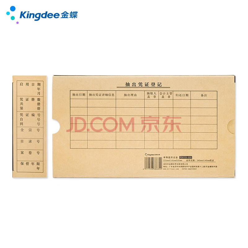商品相册:Kingdee金蝶发票版凭证盒会计档案凭证装订收纳盒550克牛卡纸255*145*50mm 50个/包第