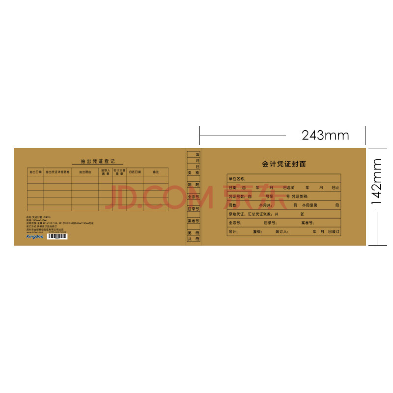 商品相册:金蝶(kingdee)会计凭证封面发票版财务装订连体封面243*142mm 50个/包RM05热门商品办公用品打印纸第