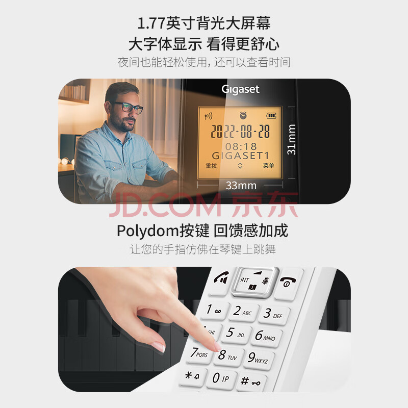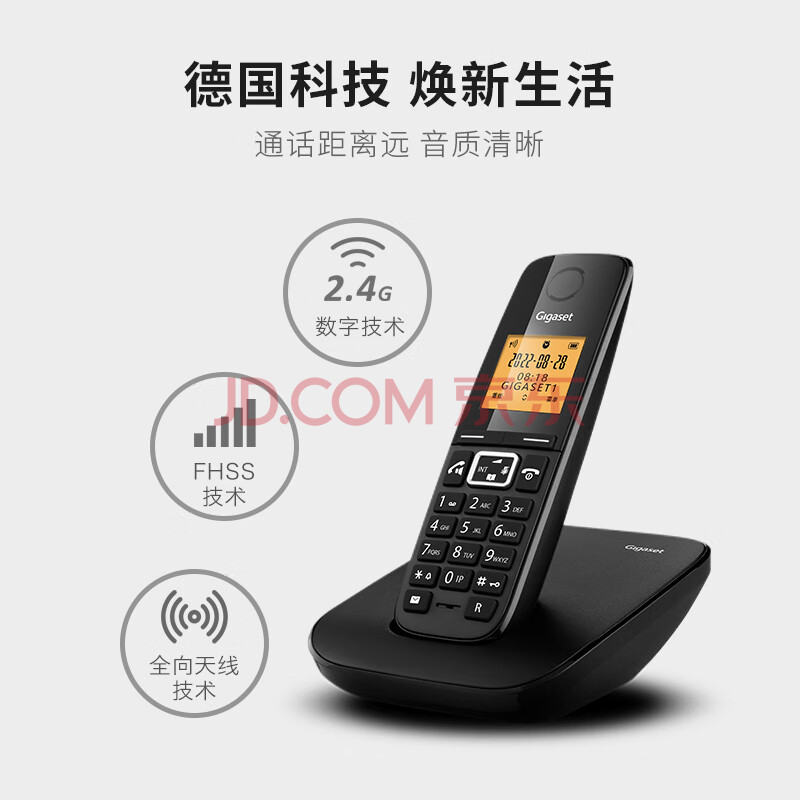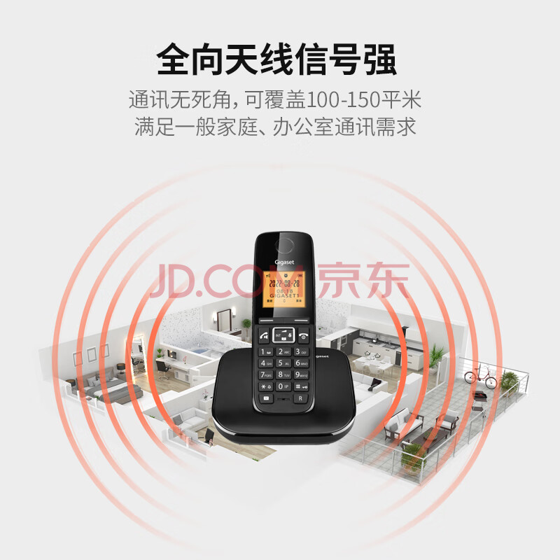 商品相册:Gigaset原西门子无绳电话机 中文菜单无线子母机 家用办公固定座机 双向天线信号强C210单机(黑)第
