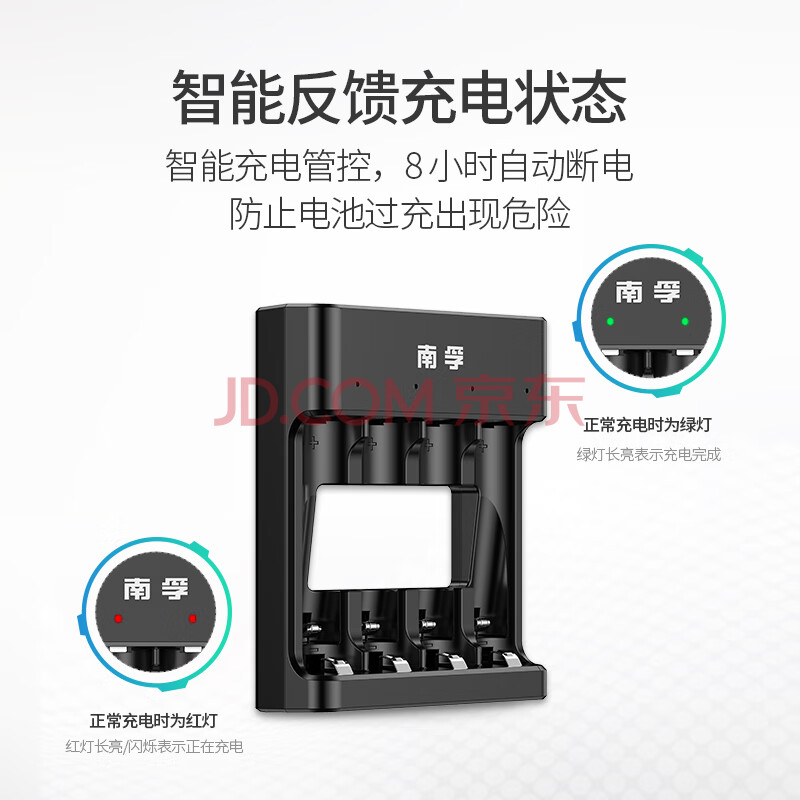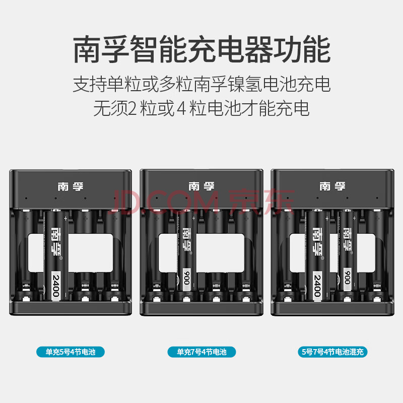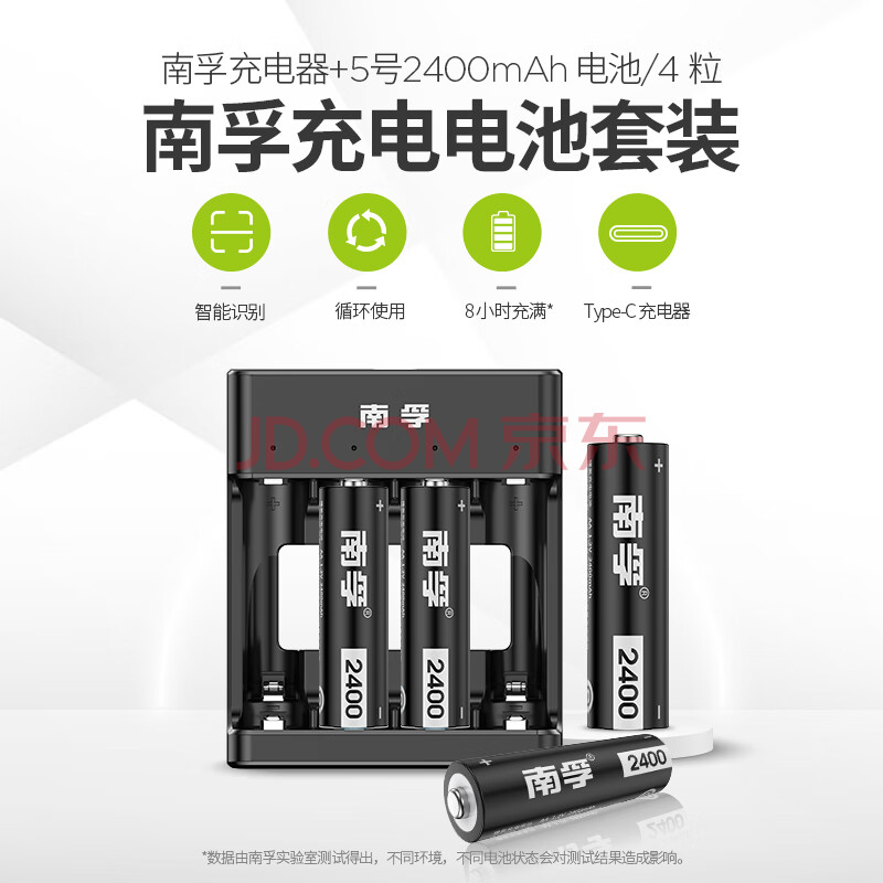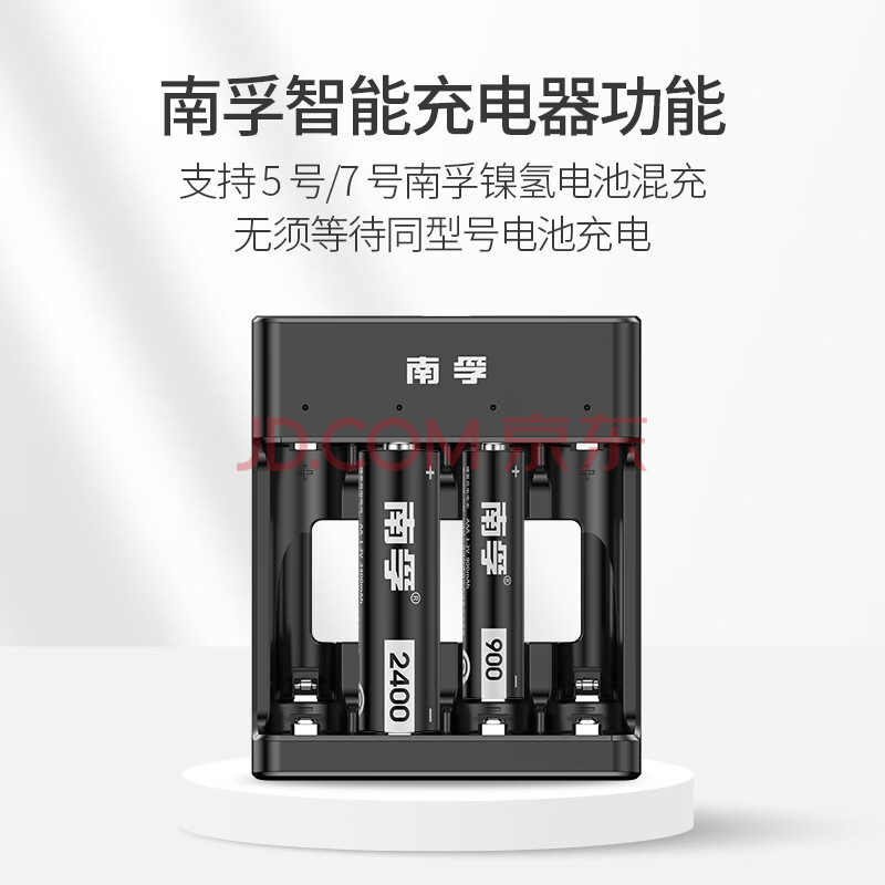 商品相册:南孚5号充电电池4粒 镍氢数码型2400mAh 附充电器 适用于玩具车/挂钟/鼠标键盘等 AA-4B+第