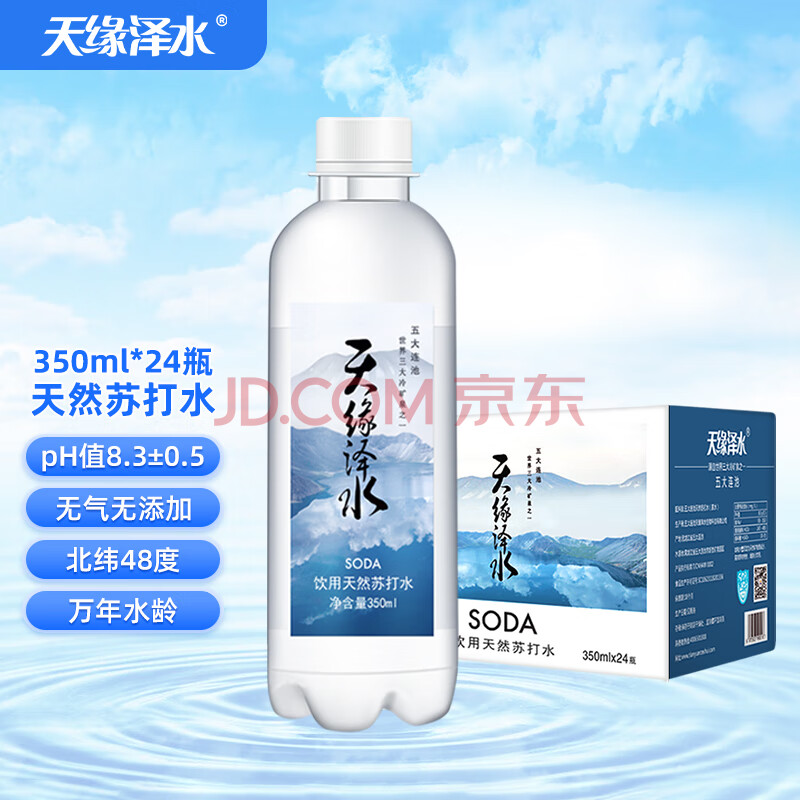 商品相册:天缘泽水 五大连池饮用天然苏打水350ml*24瓶无气弱碱性水整箱第