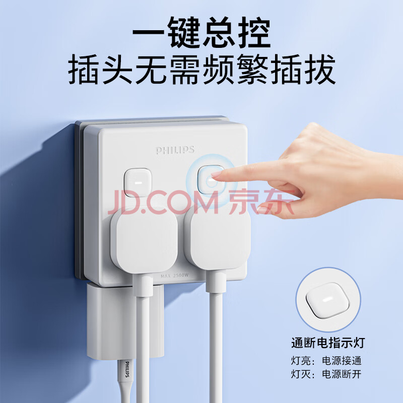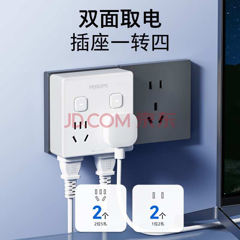 商品相册:飞利浦(PHILIPS)86型转换插座插头/插座转换器/一转四分控/多功能插座/一转多插座扩展/插排扩展器第