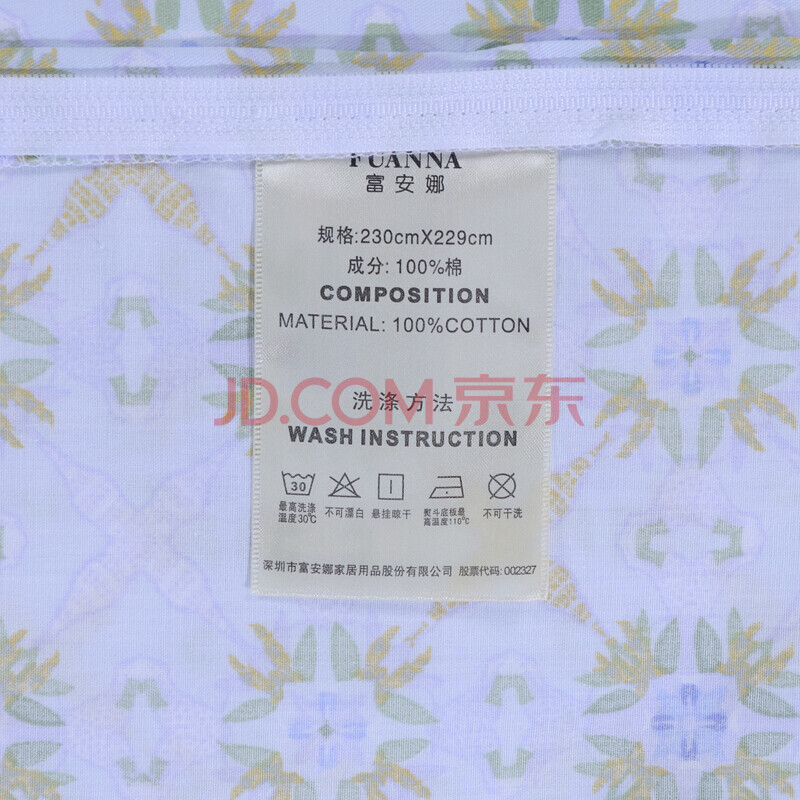 商品相册:富安娜床上四件套纯棉100%全棉床品套件 双人加大床单被套 1米8床江南第