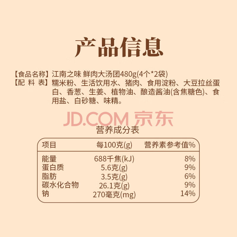 商品相册:江南之味 鲜肉大汤团480g(4个*2袋) 元宵汤圆 早餐夜宵火锅食材第