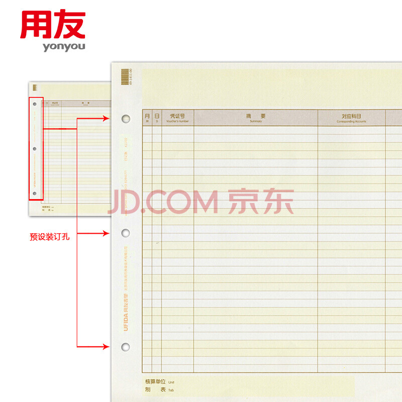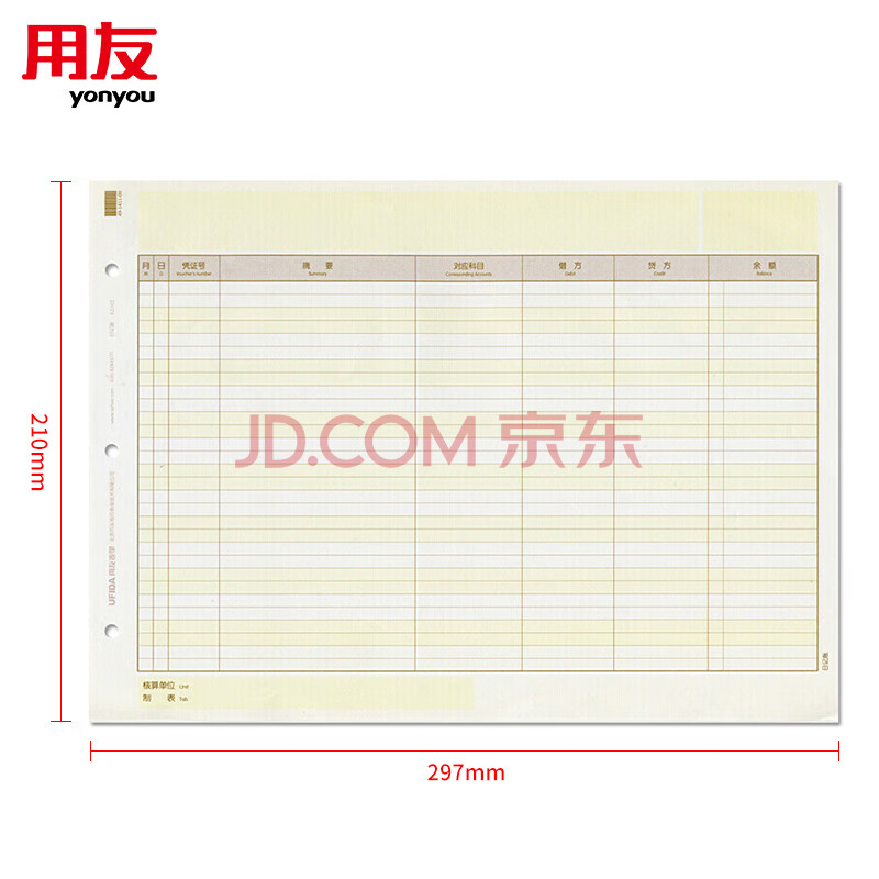 商品相册:用友(UFIDA)A4现金(银行)日记账 297*210mm 1000份/箱 好会计财务软件账本账簿凭证打印纸 KZJ102第