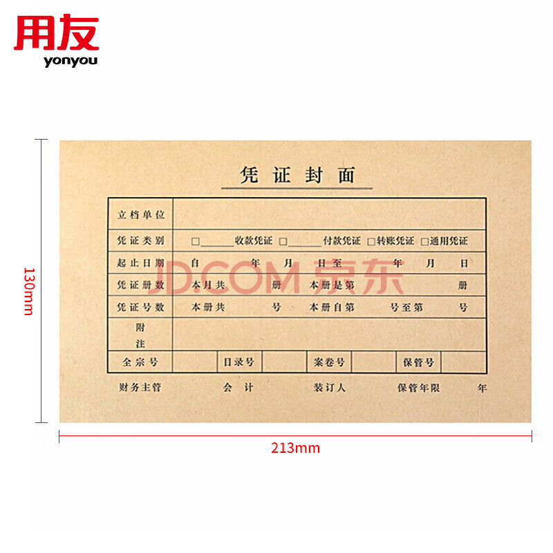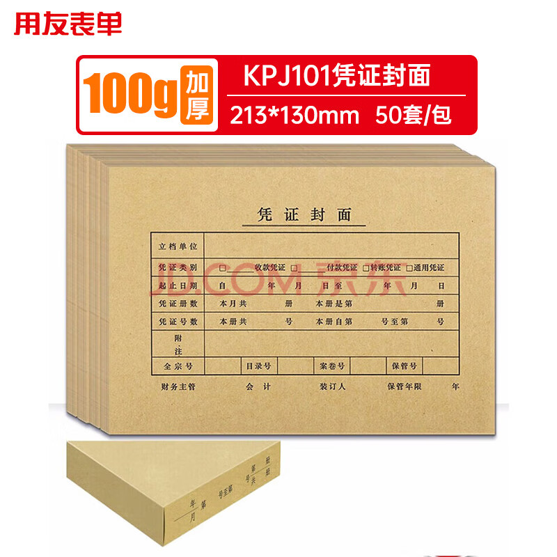 商品相册:用友表单KPJ101凭证封面 50套(封面封底包角) 配通用SKPJ101财务会计记账牛皮纸封皮包角装订存档通用FM111第