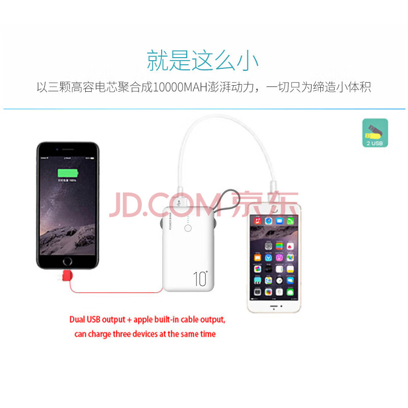 商品相册:KIVee 便携挂绳带一拖三数据线移动电源YH-P009 10000mah第