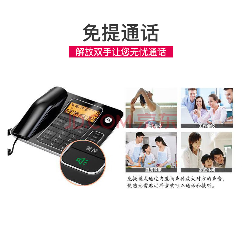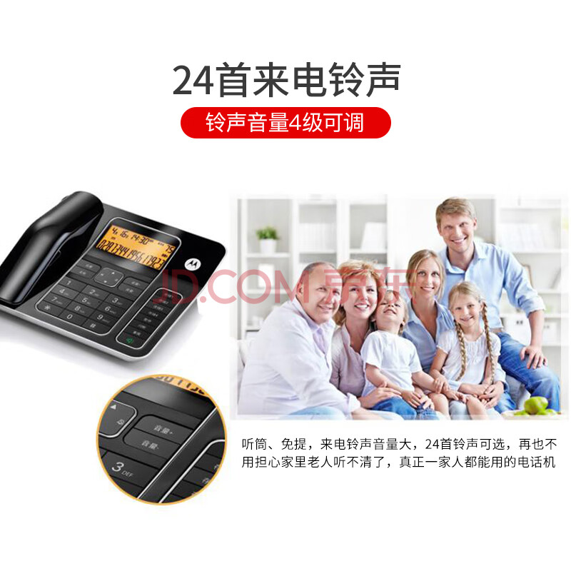 商品相册:摩托罗拉(Motorola)电话机座机固定电话 办公家用 5米远距离免提 大屏幕 大按键 钢琴烤漆 CT340C(黑色)第
