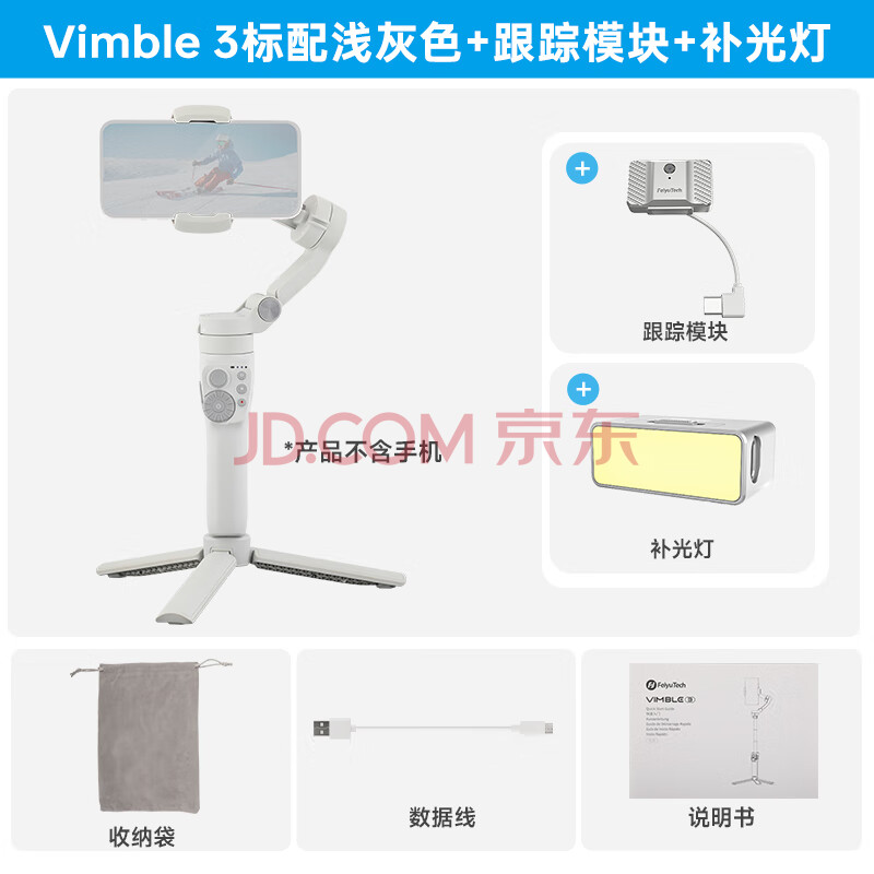 商品相册:FeiyuTech 飞宇Vimble3手持云台稳定器手机 可伸缩三轴防抖vlog 标配+补光灯+跟踪模块第