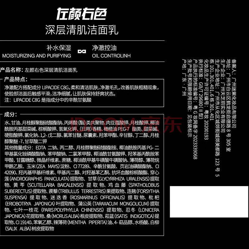 商品相册:左颜右色【郑恺代言】男士护肤品控油洗面奶控油保湿洁面乳礼盒开学季送礼第1张/共8