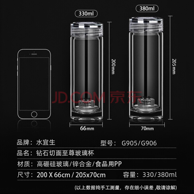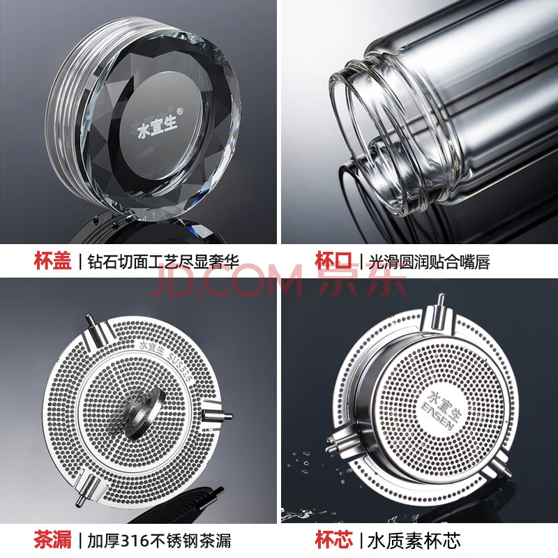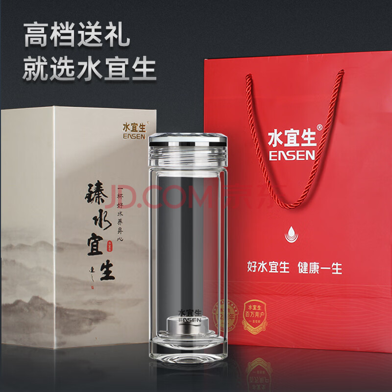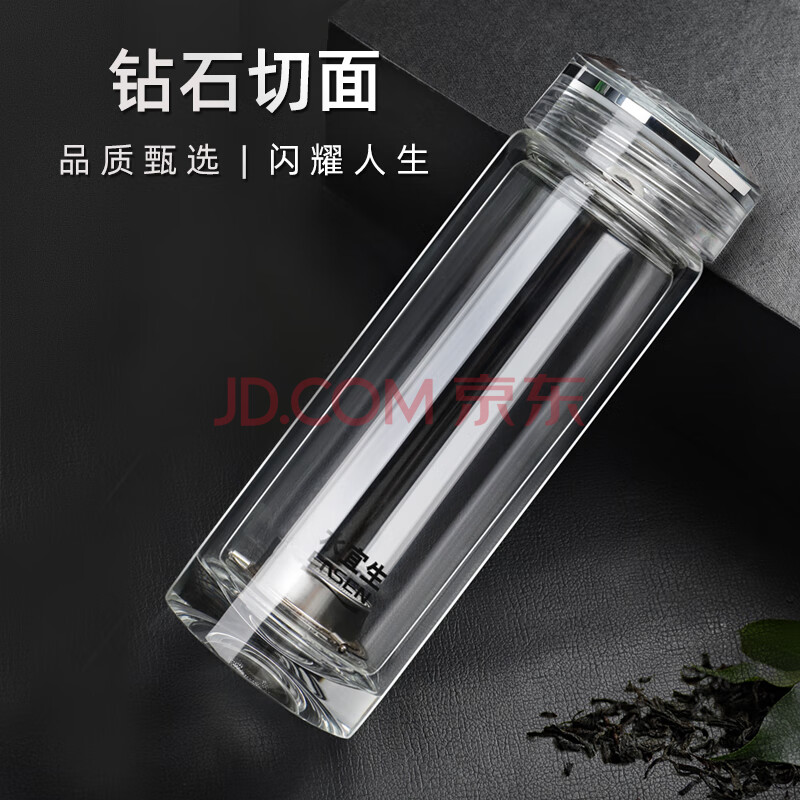 商品相册:水宜生玻璃杯茶杯男士双层水杯高档商务透明便携女防烫弱碱性办公杯子第