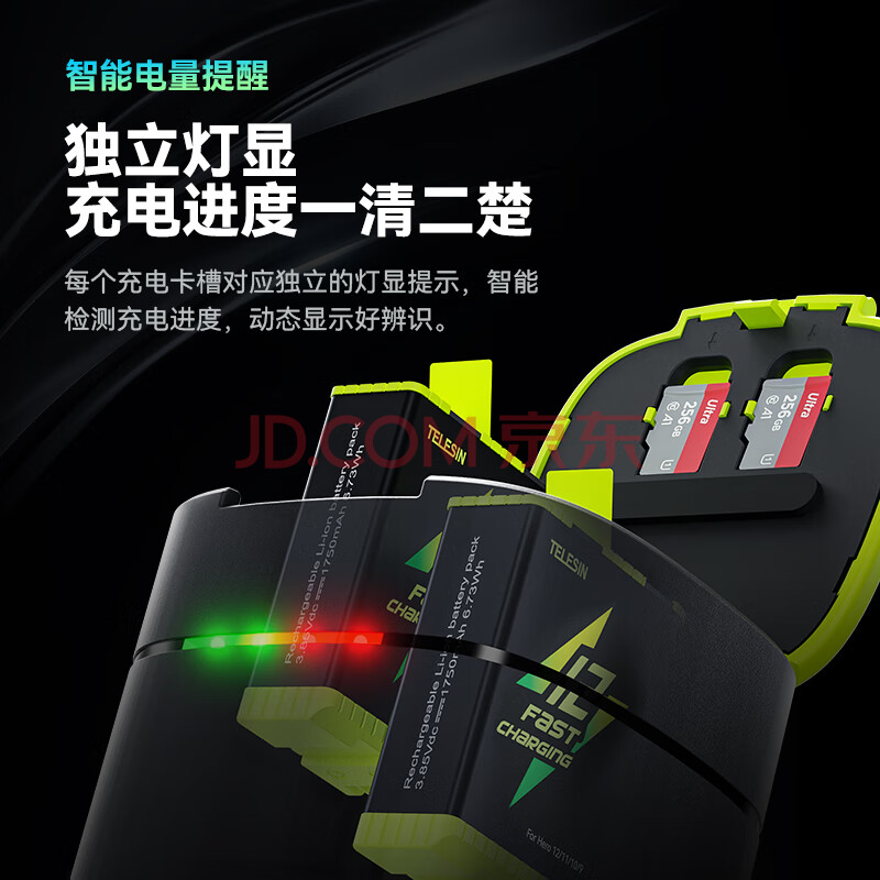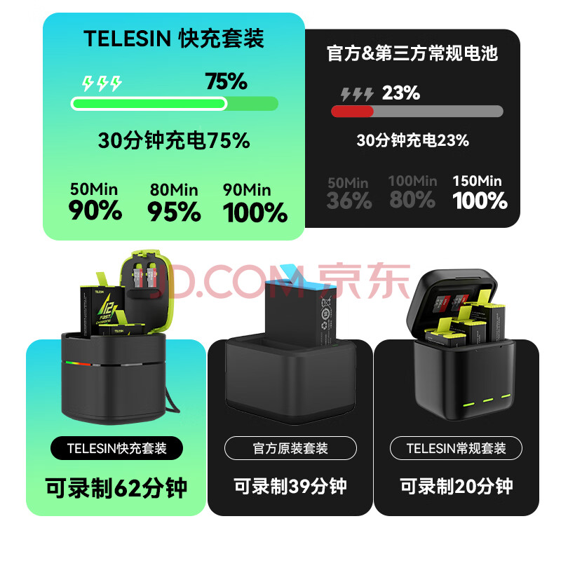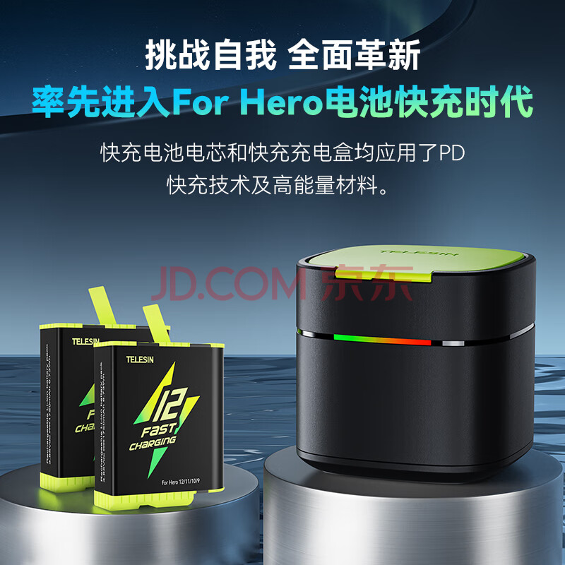 商品相册:TELESIN(泰迅)适配gopro11快充电池gopro12充电器适用gopro10 9运动相机PD快充电池多充两电一充套装 第