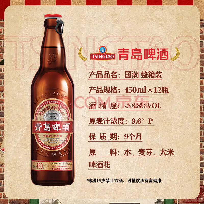 商品相册:青岛啤酒(TsingTao)国潮450ml*12瓶 大瓶整箱装原麦汁浓度9.6°P第
