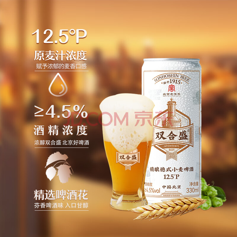 商品相册:双合盛德式小麦精酿啤酒 百年老字号 全麦酿造330ml*24罐【临期】第