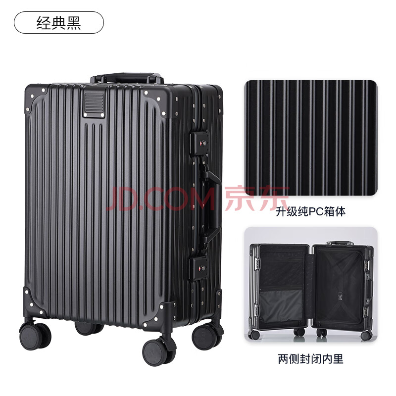 商品相册:ELLE法国24英寸黑色行李箱男女通用拉杆箱轻便旅行箱万向轮TSA密码箱第