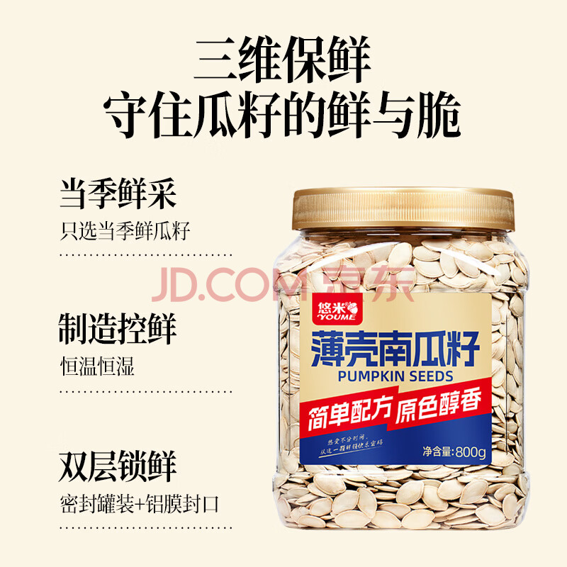 商品相册:悠米原味薄壳南瓜子800g休闲零食坚果炒货干果内蒙古五分熟南瓜籽第