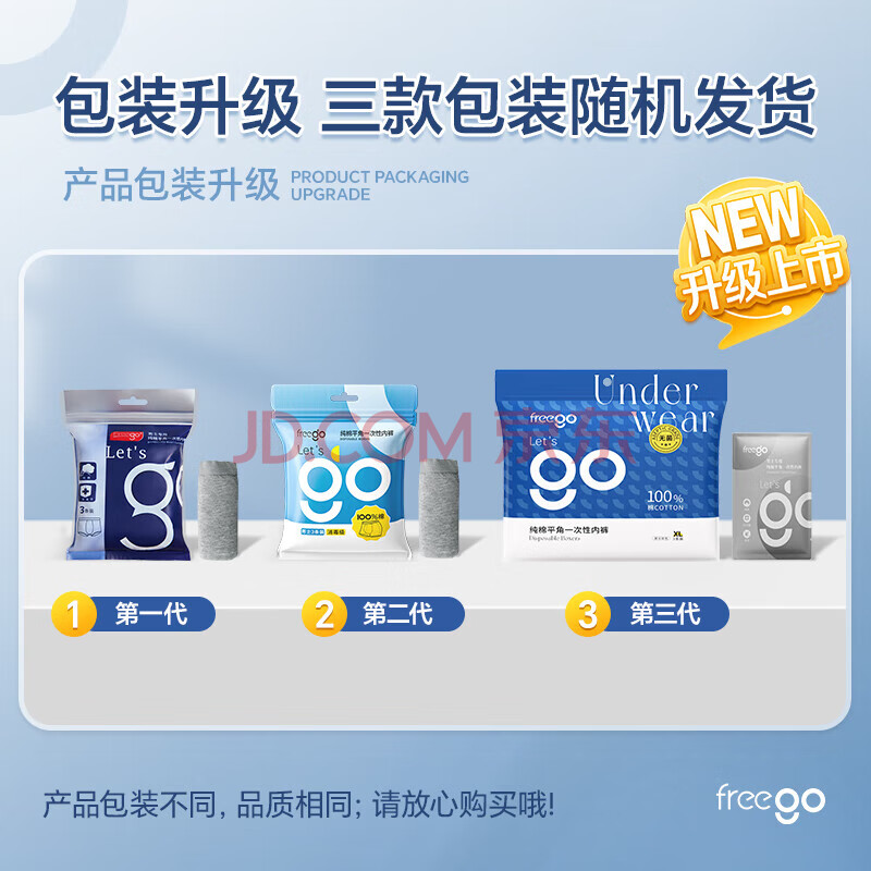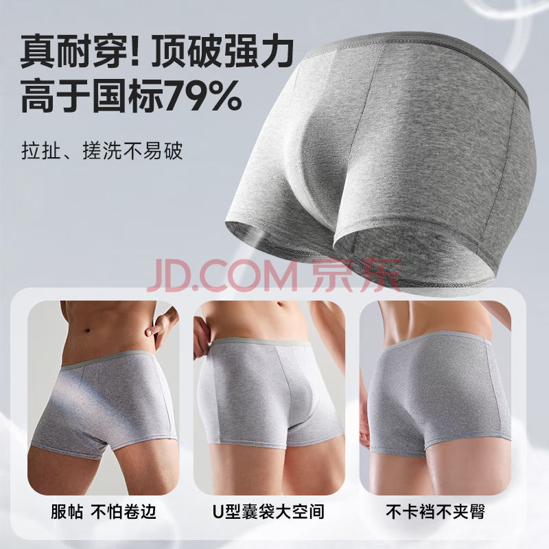 商品相册:Freego一次性男士平角内裤3条纯棉旅行灭菌便携舒适大码 男灰4XL第