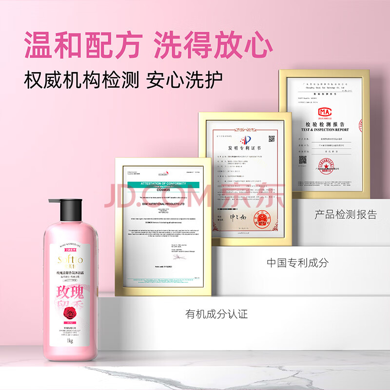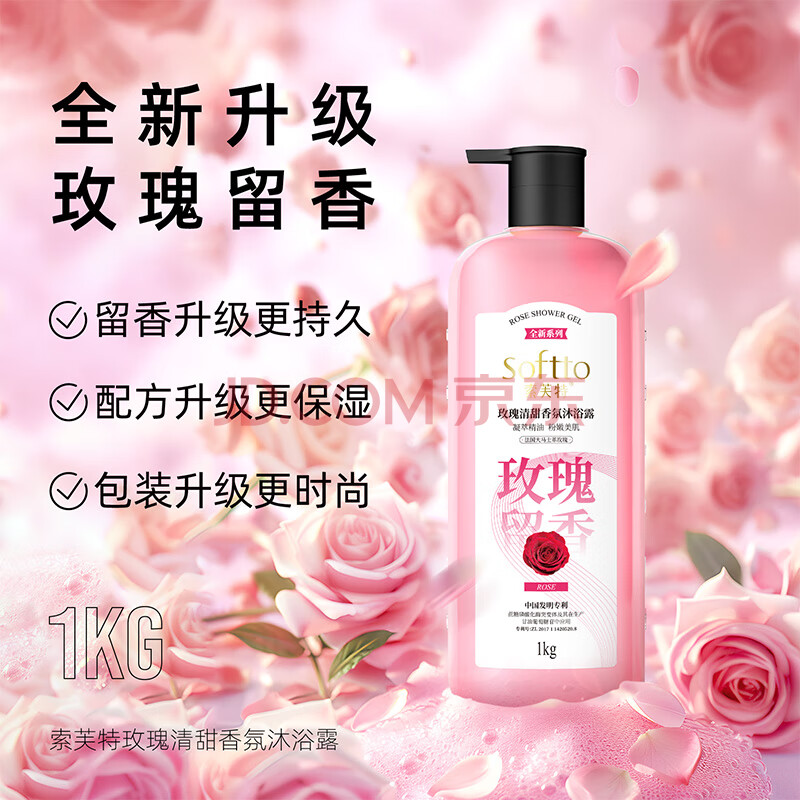商品相册:索芙特玫瑰清甜香氛沐浴露1kg清爽洁净润肤沐浴乳持久留香沐浴液第