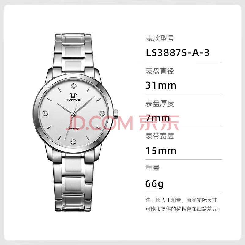 商品相册:天王(TIAN WANG)手表女士 生日礼物沧海系列简约钢带石英表白色LS3887S-A-3第