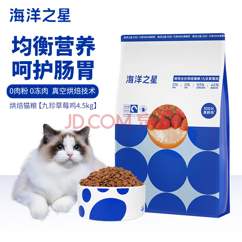 商品相册:海洋之星猫粮低温烘焙猫粮 幼猫成猫高蛋白增肥鲜肉粮4.5kg(九珍草莓鸡)第