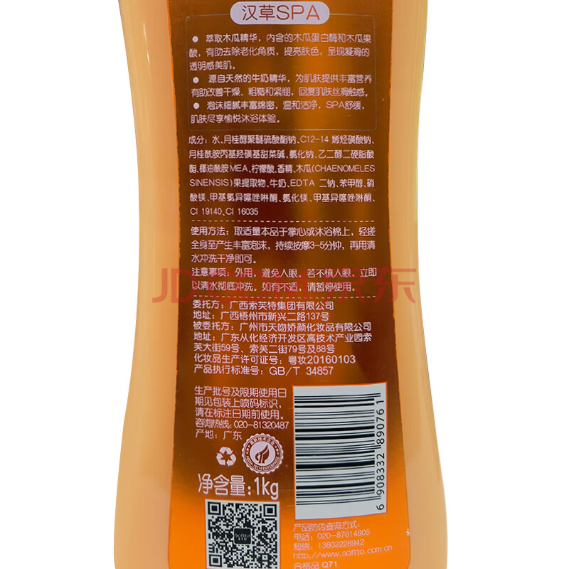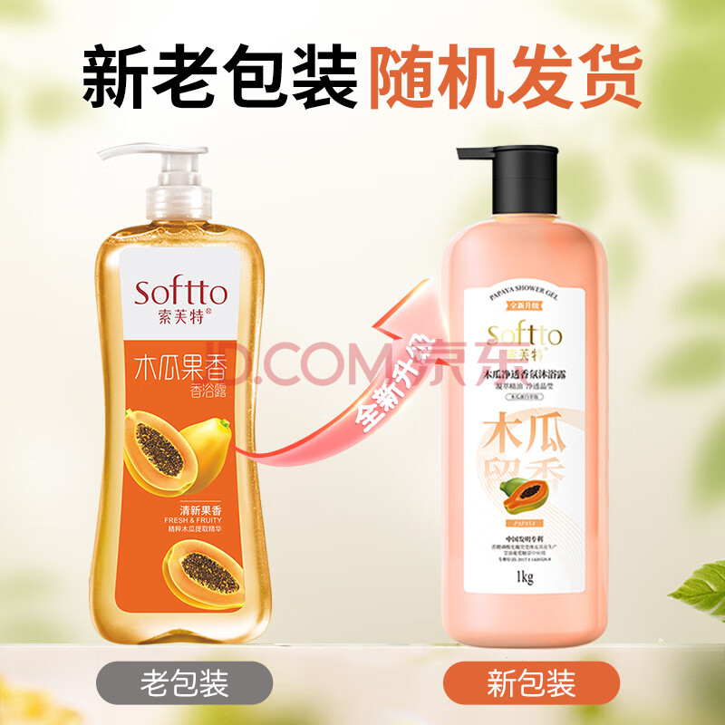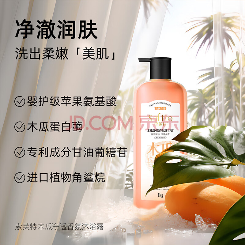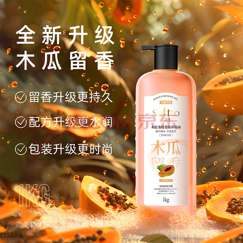 商品相册:索芙特木瓜净透香氛沐浴露1kg男女持久留香滋润嫩肤家庭装大容量沐浴乳第