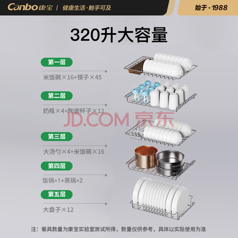 商品相册:康宝(Canbo)消毒柜 家用立式消毒碗柜大容量商用碗筷收纳消毒柜双门高温二星级碗柜XDZ320-D1第