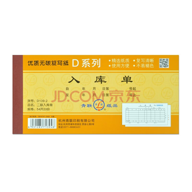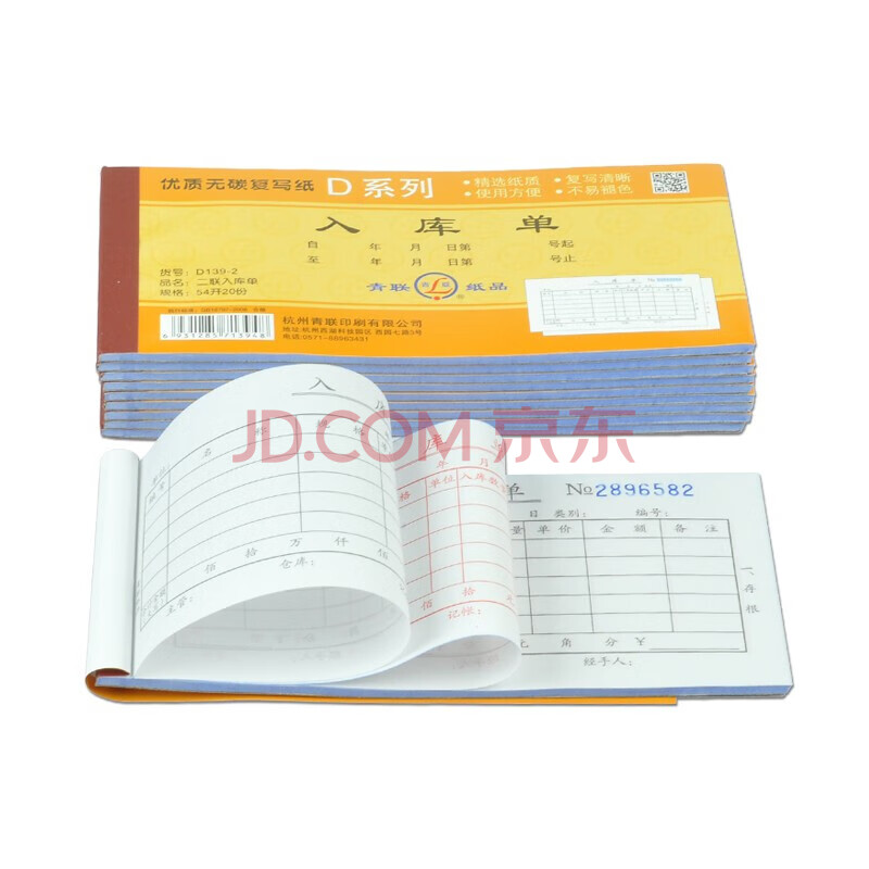 商品相册:青联 D139三联入库单54开优质无碳复写3联入库单带复写仓库入库单10本 10本三联入库单 ZY第