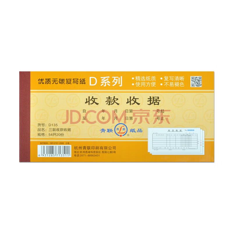 商品相册:青联 D135 三联收款收据单 三联收据多栏式【10本】 ZY第