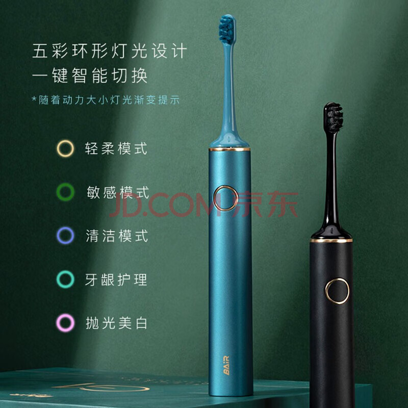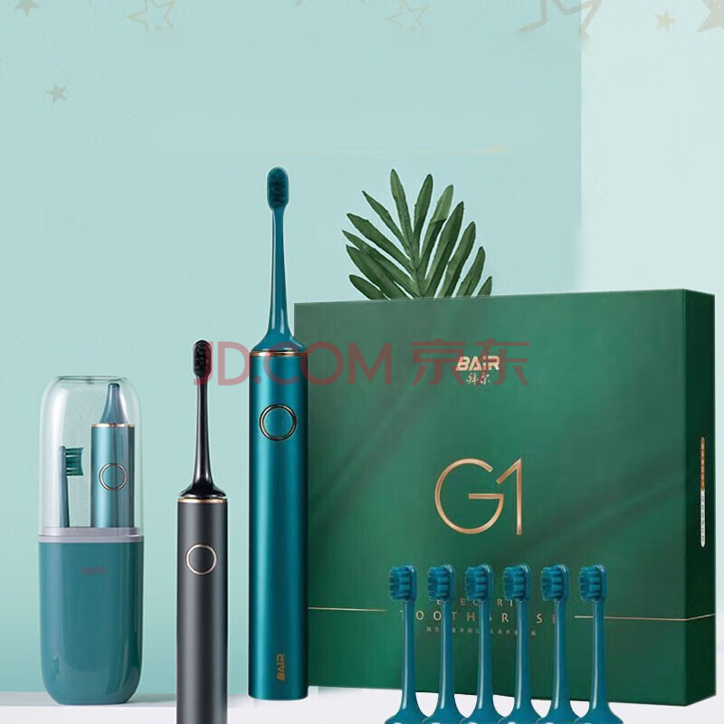商品相册:拜尔(BAIR)G1豪华定制版 电动牙刷成人充电式智能声波【精美盒装】+旅行盒+刷头*6天青色第
