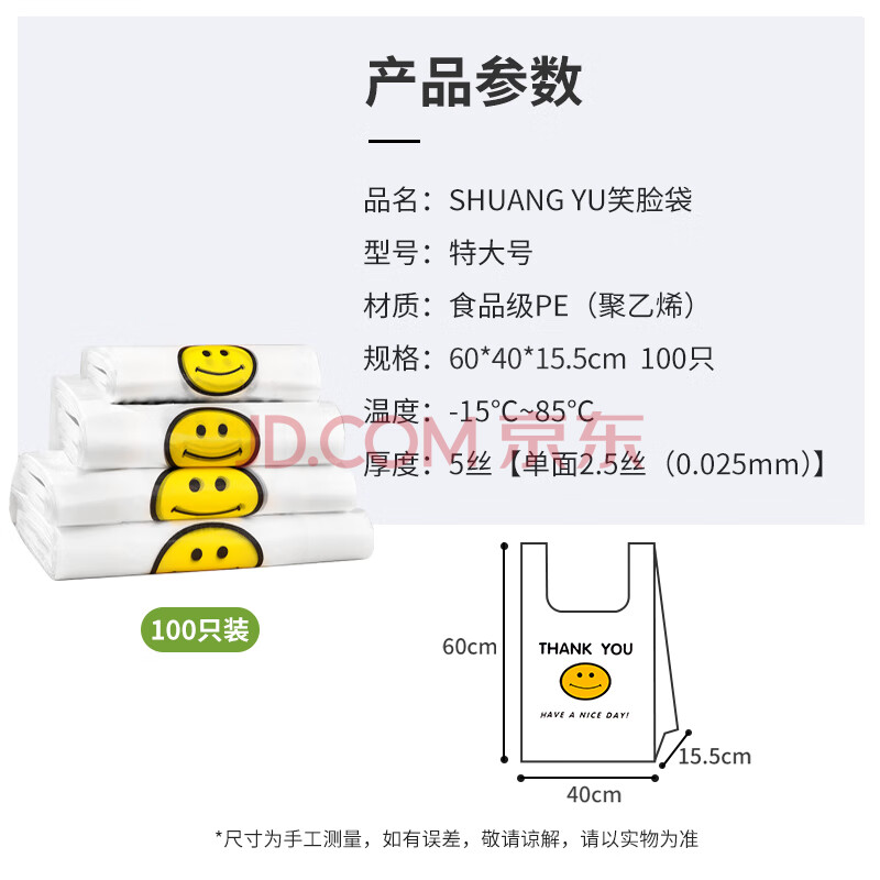 商品相册:SHUANG YU塑料袋【加厚40*60cm/100只】大号笑脸袋马夹袋购物袋食品袋子第1张/共7