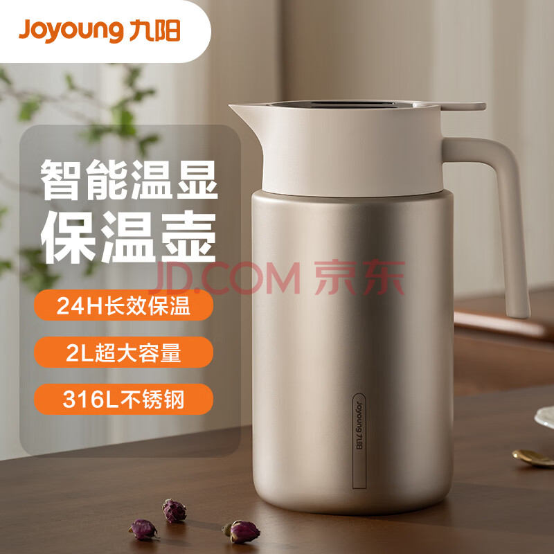商品相册:九阳(Joyoung)保温壶智能温显壶家用大容量水壶316L不锈钢户外暖水瓶WR912白2L第