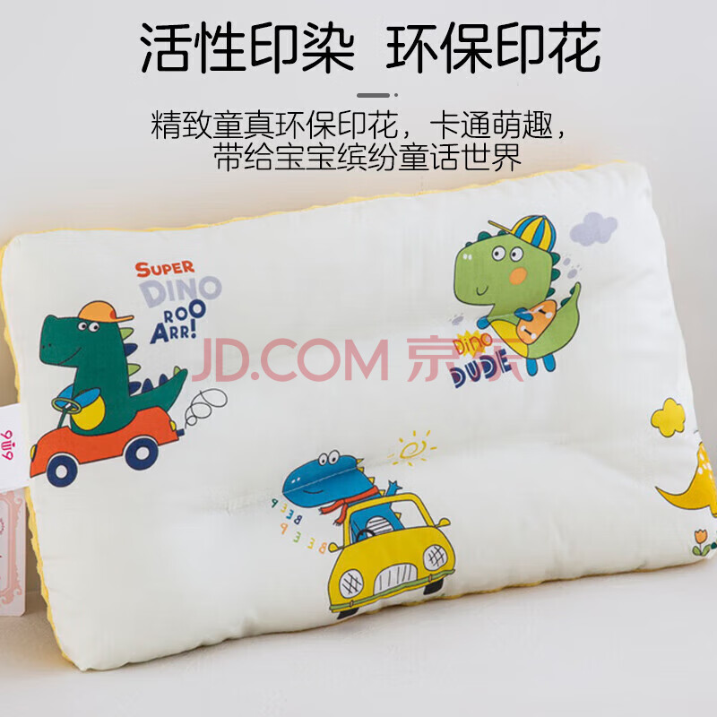 商品相册:9i9宝宝枕头儿童幼儿园枕头纯棉枕套安抚枕豆豆双面可洗恐龙50*30第