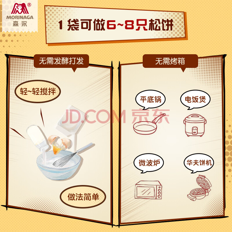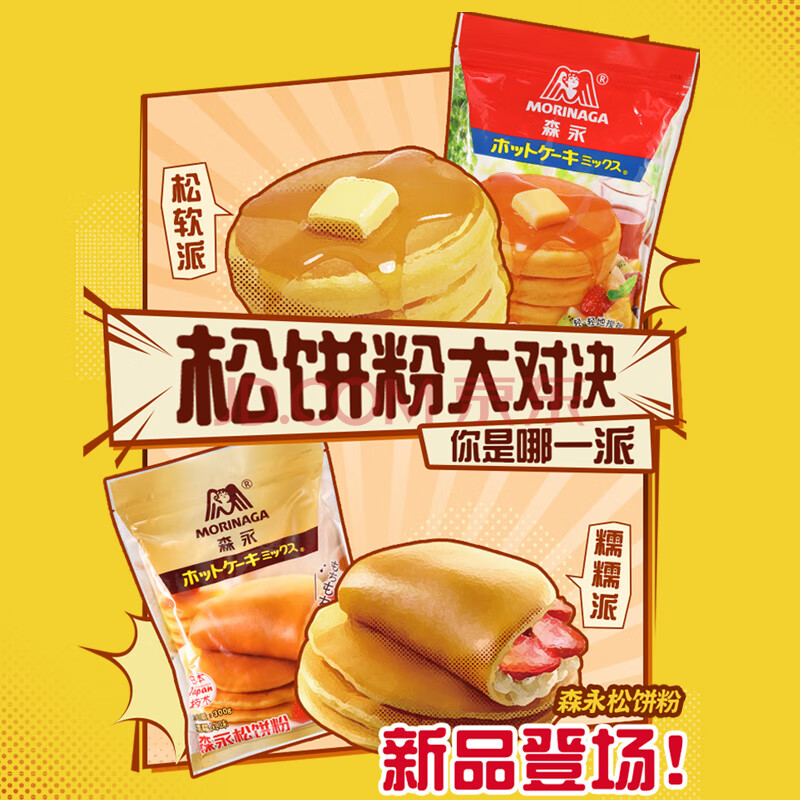 商品相册:森永(Morinaga)松饼粉华夫饼预拌粉早餐烘焙原料松饼粉300g+糯糯松饼粉300g第