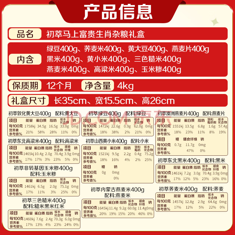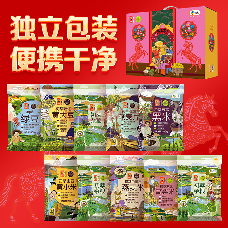 商品相册:初萃中粮杂粮礼盒8斤(400g*10袋)10种杂粮 节日送礼 企业团购第