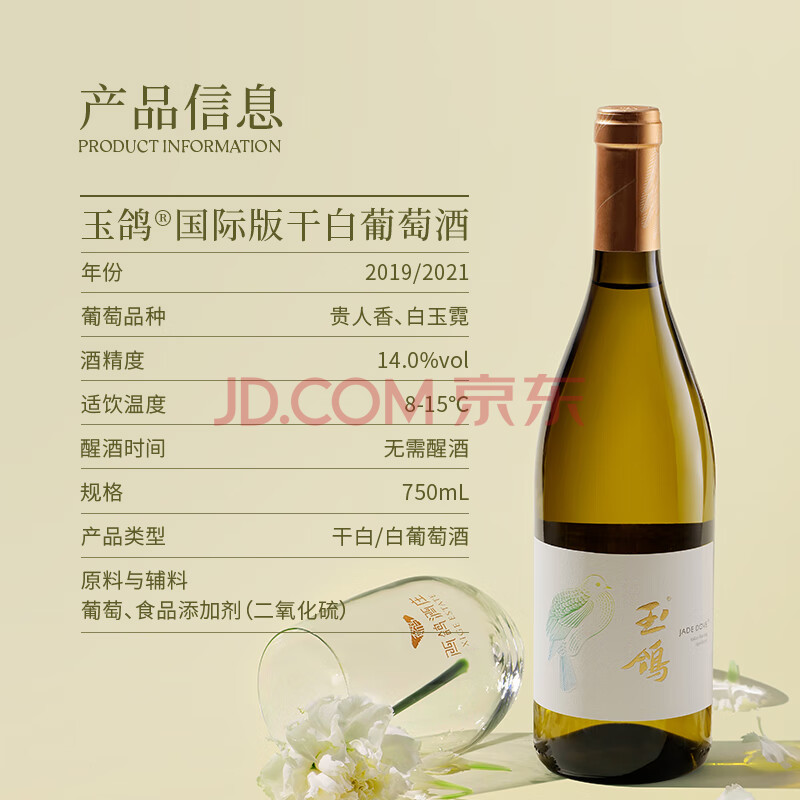 商品相册:西鸽酒庄玉鸽国际版干白葡萄酒750ml 宁夏贺兰山国产女士红酒送礼第