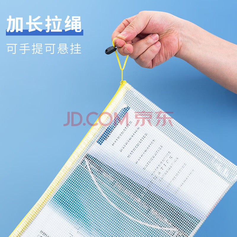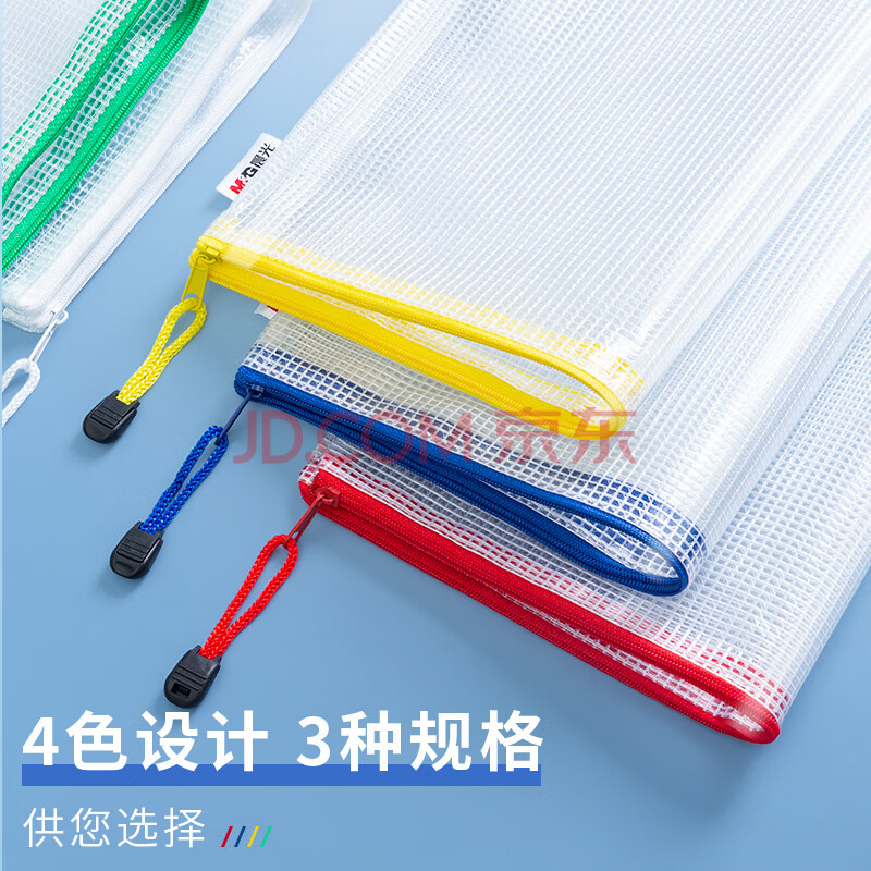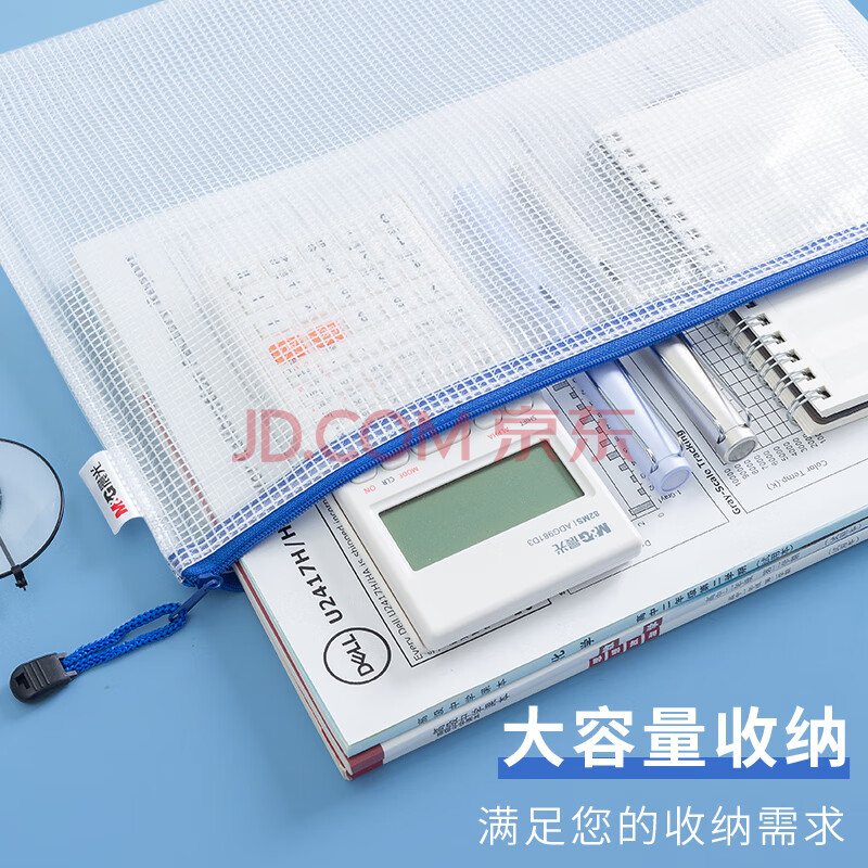 商品相册:晨光(M&G)文具5个A4透明网格拉链袋 办公文件资料防水袋 学生试卷课本收纳袋 蓝色ADM929F5-A第